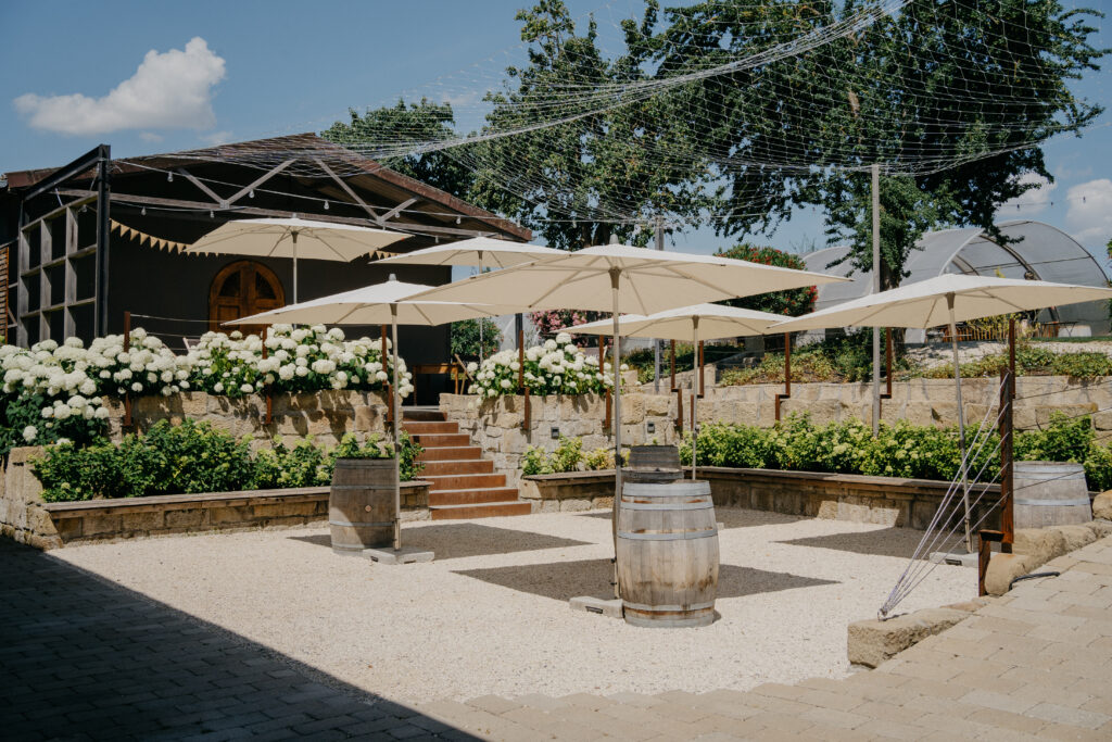 Auf dem Landgut Steng könnt ihr eure Trauung auf unterschiedliche Weise feiern. Bei schönem Wetter bietet sich eine freie Zeremonie im Grünen an, bei der ihr von der idyllischen Landschaft der Weinberge und der Gartenflächen umgeben seid. Die sanften Hügel und der Blick auf die Reben schaffen eine natürliche Kulisse für eure Hochzeitsfotos und sorgen für eine entspannte Atmosphäre. Selbst bei strahlendem Sonnenschein könnt ihr dank der über der Zeremonie angebrachten Sonnensegel den Tag unbeschwert genießen.