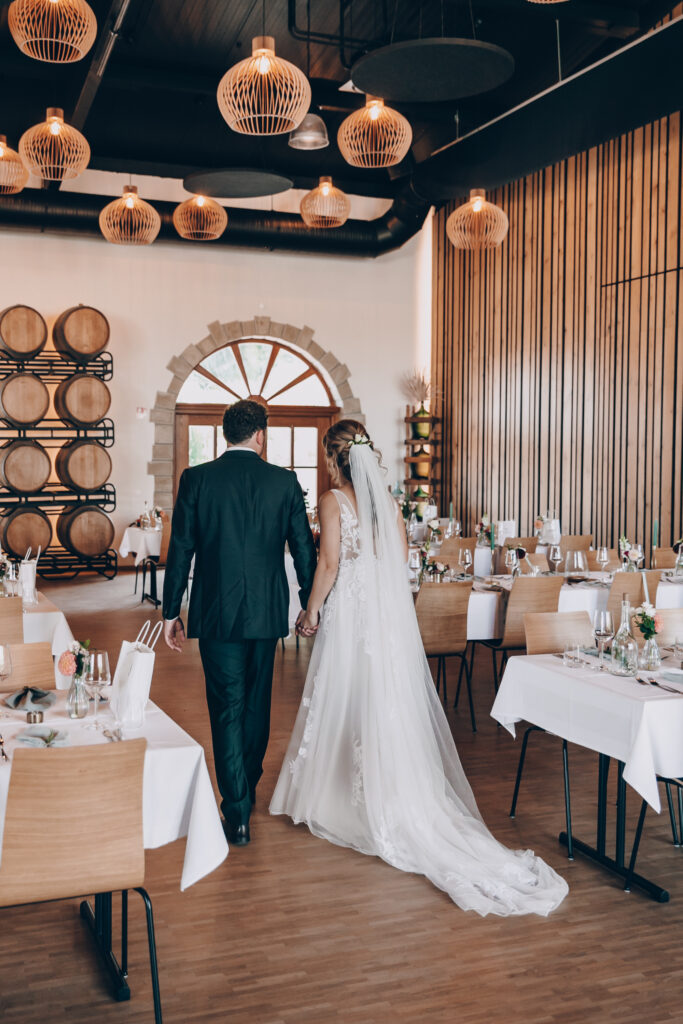 Für den Empfang oder entspannte Momente am Abend lädt die Sonnenterrasse ein. Umgeben von Weinbergen und Wiesen können Brautpaare und Gäste hier den Tag in einer offenen, natürlichen Atmosphäre genießen. Beim Catering könnt ihr euch zwischen Menü und Buffetlösungen entscheiden und das Hochzeitsessen perfekt auf eure Wünsche abstimmen.