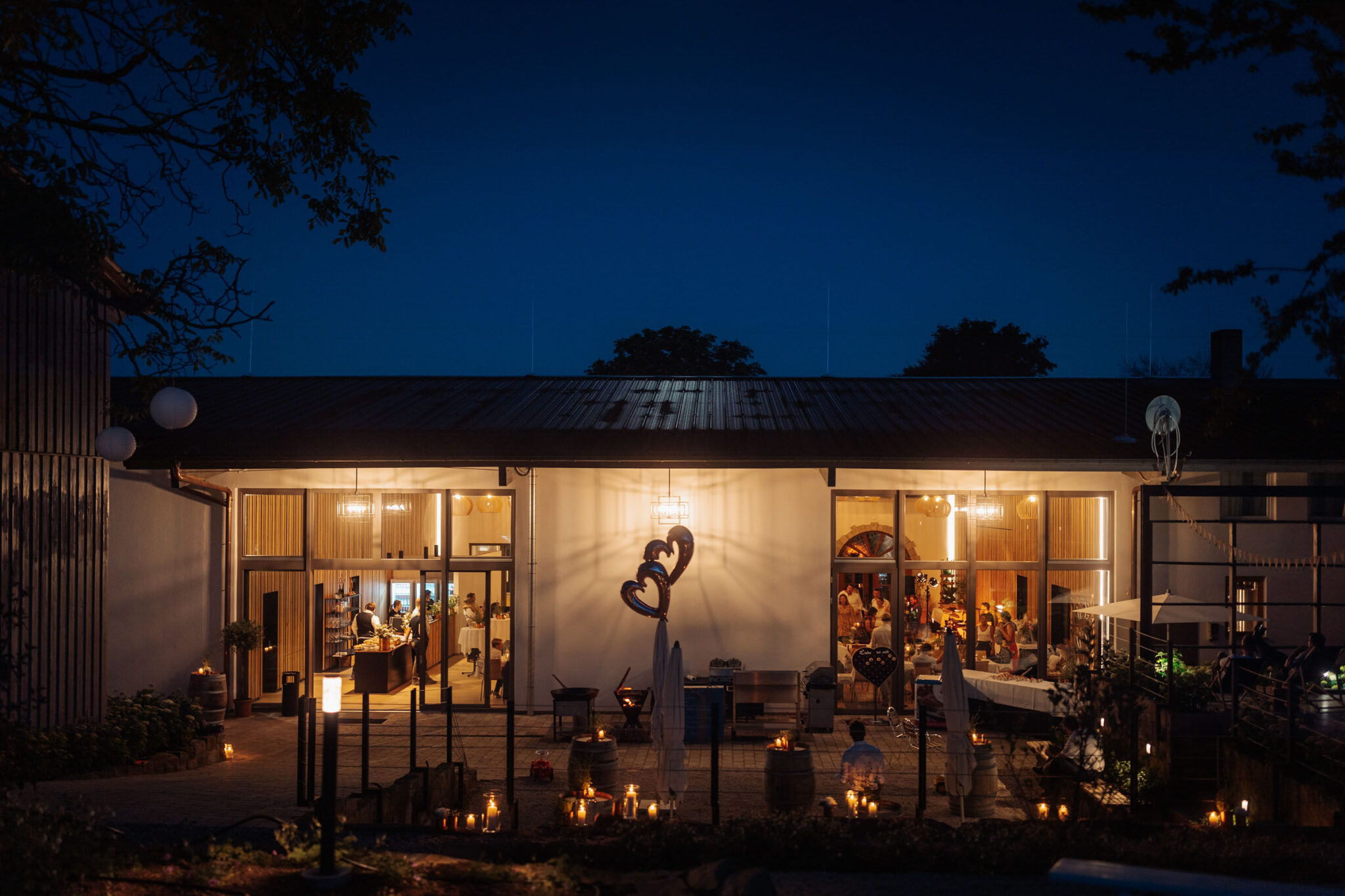 Nach der Trauung beginnt das Hochzeitsfest in der Eventhalle, die je nach Bestuhlung Platz für bis zu 150 Gäste bietet. Die Halle lässt sich flexibel gestalten – vom festlichen Dinner über ein unterhaltsames Programm bis hin zu musikalischen Einlagen – und sorgt mit moderner Technik für eine reibungslose Umsetzung eurer Feier.